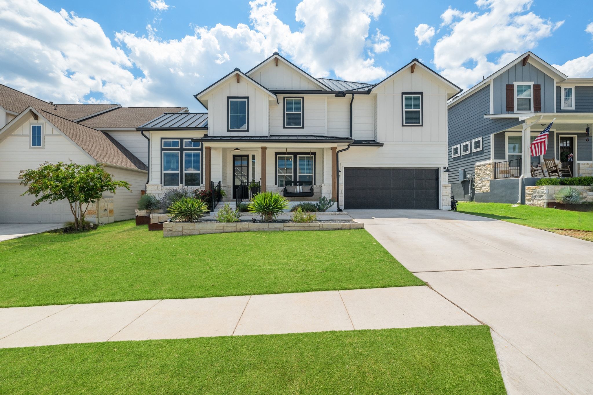 Additional highlights include a garage transformed into a fully equipped home gym, plus a covered patio and fenced backyard ideal for entertaining. The inviting front porch swing sets the tone for relaxed Texas living—perfect for morning coffee or evening sunsets. Headwaters community offers miles of scenic trails, a state-of-the-art fitness center, resort-style pool, community parks, and sweeping Hill Country views—all just minutes from Dripping Springs dining, shopping, and top-rated schools.