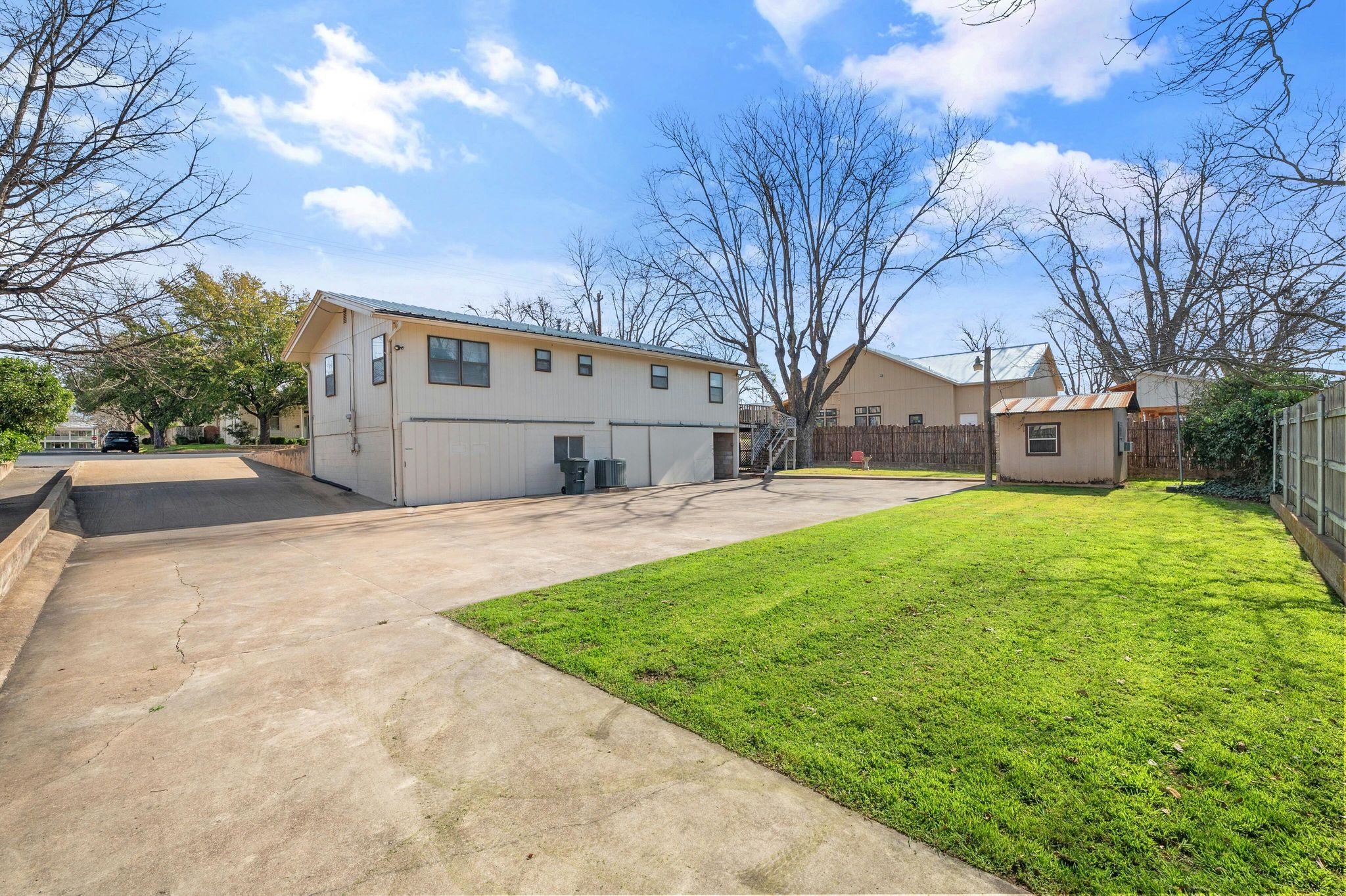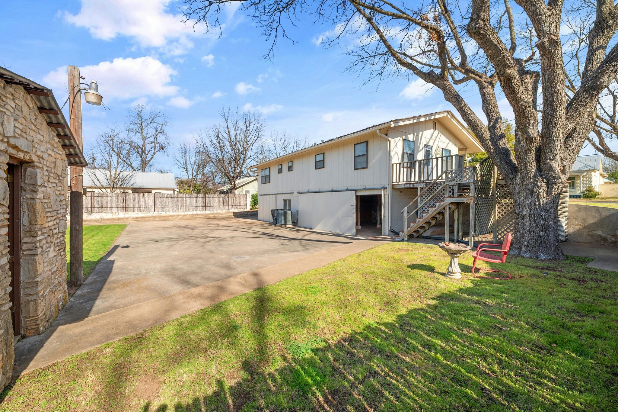 Walking distance to everything downtown has to offer, this adorable one-story home is ideal for those seeking a second home getaway with the ability to short term rental. Located in desirable R2 zoning area with active STR permit, the open 3BR/2BA floorplan provides flexibility & investment potential. Development potential with R2 zoning, enables owner to build an additional unit in backyard with large driveway that can accommodate 4 cars–an essential requirement with multiple units. This unique home offers a spacious 1000 sqft garage for cars, laundry, storage & work area. Workroom includes countertop area with cabinets & sink for a multitude of hobbies including automotive , artistic and building/woodworking. An additional small stone building in back could be an art studio or music room. Exterior features a delightful side deck, the perfect spot to unwind under the shade of the large tree. Picture yourself sipping your favorite local vintage while enjoying the TX breeze-the epitome of relaxation. Property size, lot, & features, along with premium location couldn't be more perfect. Close to restaurants, shops, and renowned wineries.
