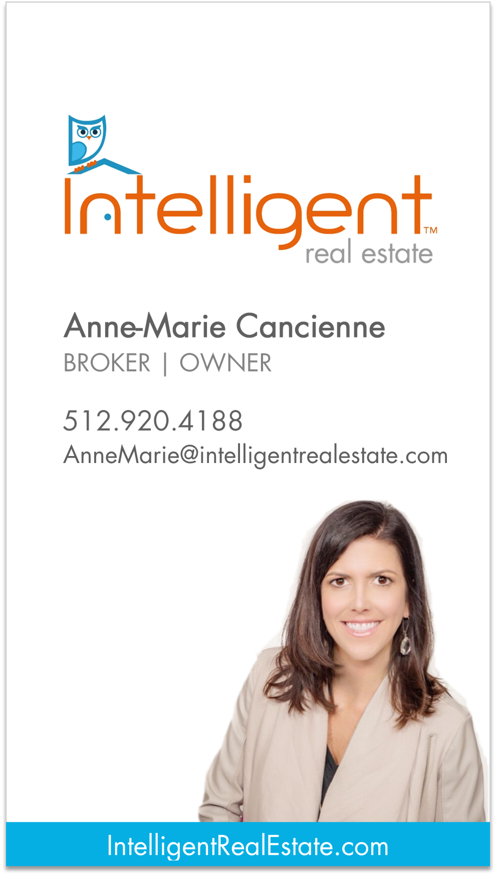 Anne Marie Cancienne, Broker/Owner, Intelligent Real Estate Business card for Anne Marie Cancienne, Broker/Owner of Intelligent Real Estate
